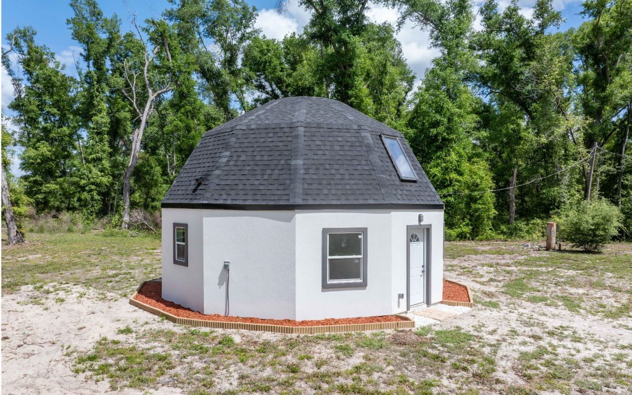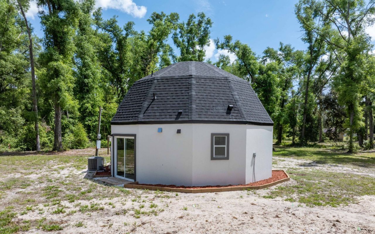 Exceptional new construction dome residence set on 2.25 private acres, offering a rare blend of luxury, efficiency, and structural integrity. This 3-bedroom, 2-bath home showcases a distinctive architectural design engineered for both performance and style. Constructed to withstand up to 180 mph winds, the property features a monolithic slab foundation with reinforced anchoring every 24 inches, delivering superior durability and peace of mind. Thoughtfully built with 2x6 exterior walls, the home provides enhanced insulation and outstanding energy efficiency. The dome design maximizes interior comfort while minimizing energy consumption, creating a quiet, resilient living environment. Expansive acreage offers endless possibilities for outdoor living, recreation, or future enhancements, all within a private, serene setting. A truly unique opportunity to own a high-performance luxury home designed for modern living and long-term value. Property is high and dry and has never flooded